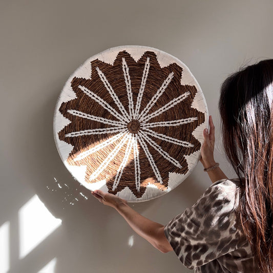 Raffia Spiegel Rond Ø50cm - Bruin / Naturel