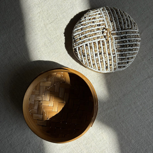 Bamboe / Kralen Offerdoosje Beige-Wit