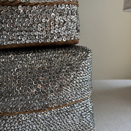 Bamboe Offermanden met Pailletten Zilver - Set van 3 stuks